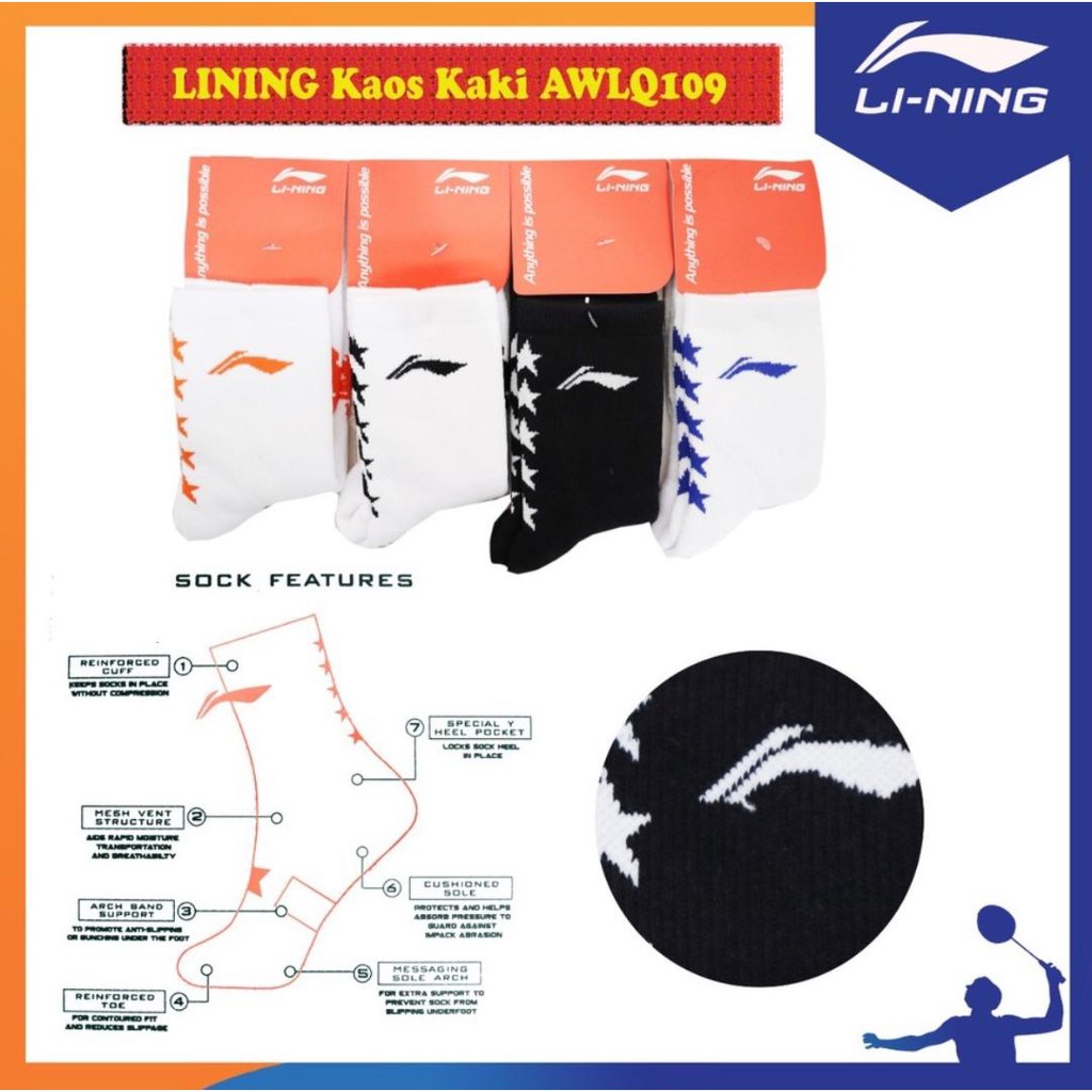 LINING KAOS KAKI LINING AWLQ 109 ORIGINAL Color : WHITE BLUE, WHITE ORANGE, WHITE BLACK (Habis), BLACK Harga :