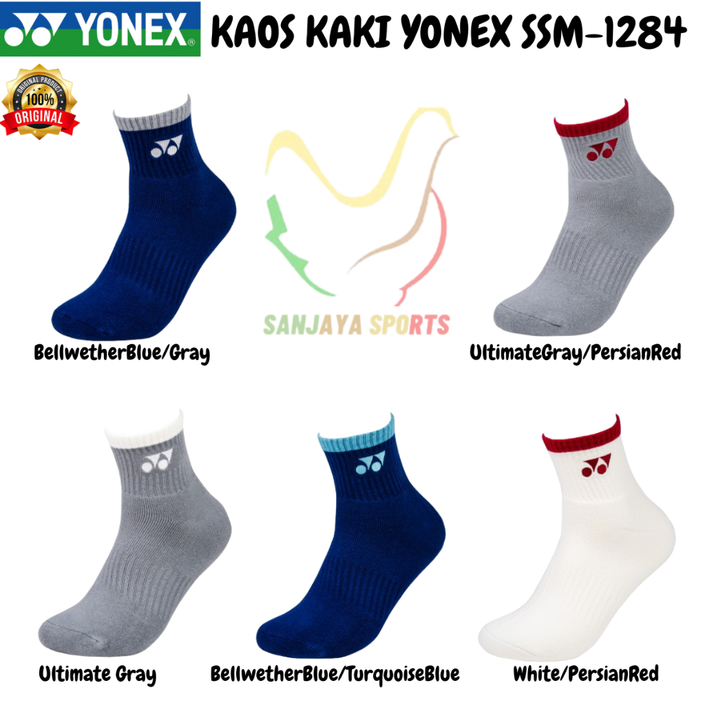 YONEX Kaos Kaki YONEX SSM-1284-MP6 Color : White/PersianRed, BellwetBlue/Turquois, Ultimate Gray, BellwetherBlue/Gray, UltimtGry/PersianReD Harga :