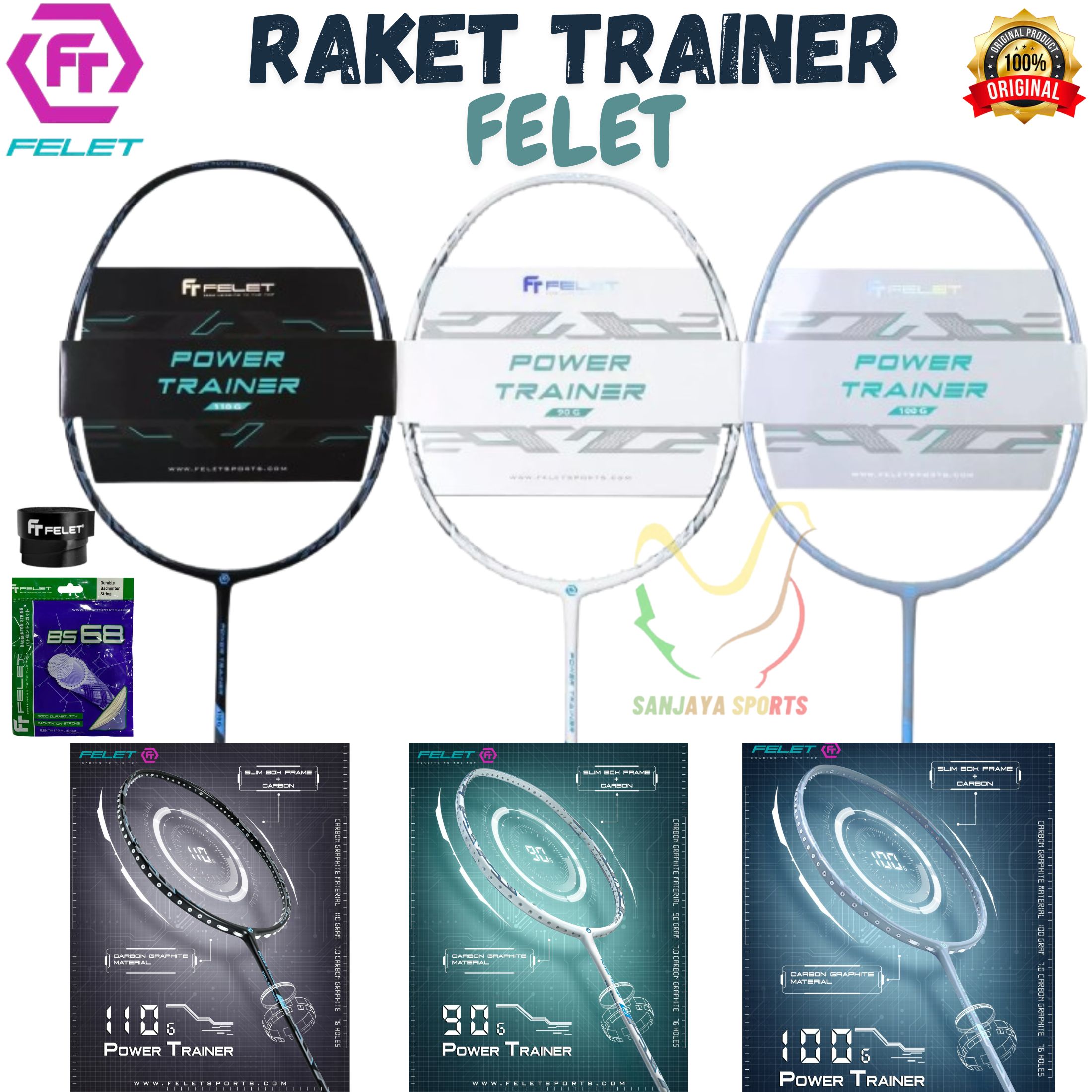 FELET RAKET BADMINTON BULUTANGKIS FELET TJ 1000 POWER SPEED CONTROL ORIGINAL +SENAR+GRIP Harga :