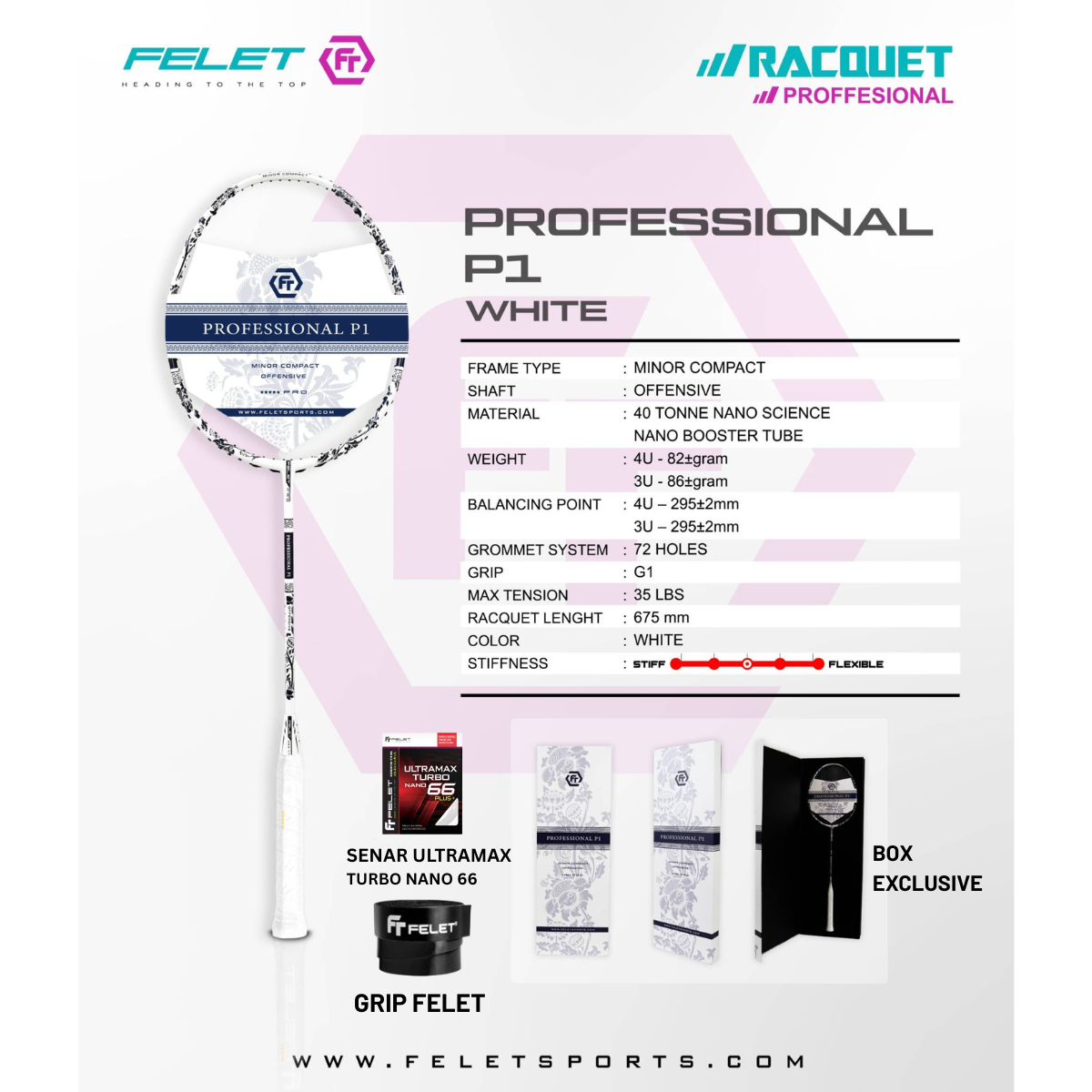 FELET RAKET BADMINTON FELET WOVEN TJ 1000 3U & 4U=HABIS ORIGINAL. BONUS: RAKET COVER PVC, OVER GRIP 750D, SENAR FELET ULTRAMAX TURBONANO 66 WHITE Harga :