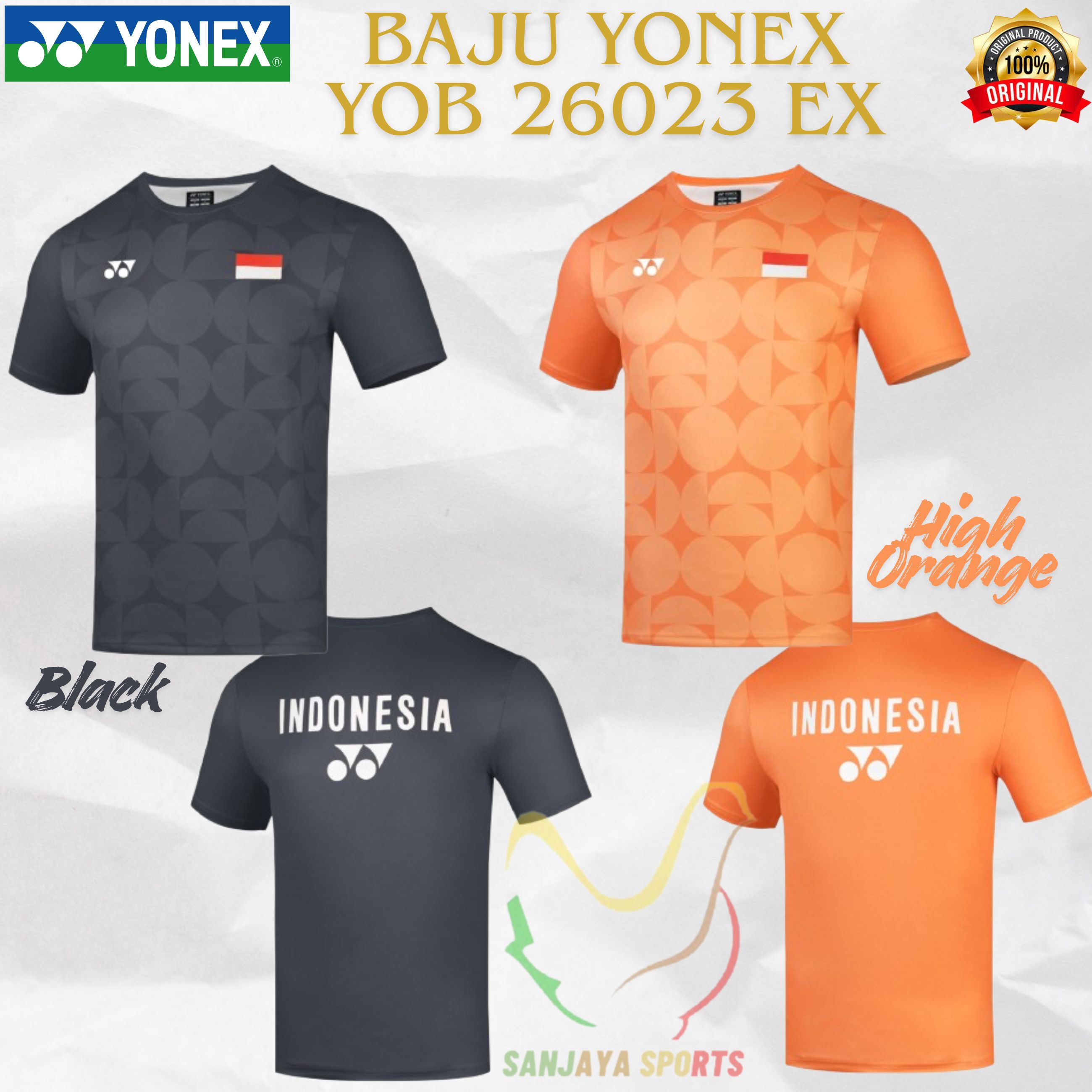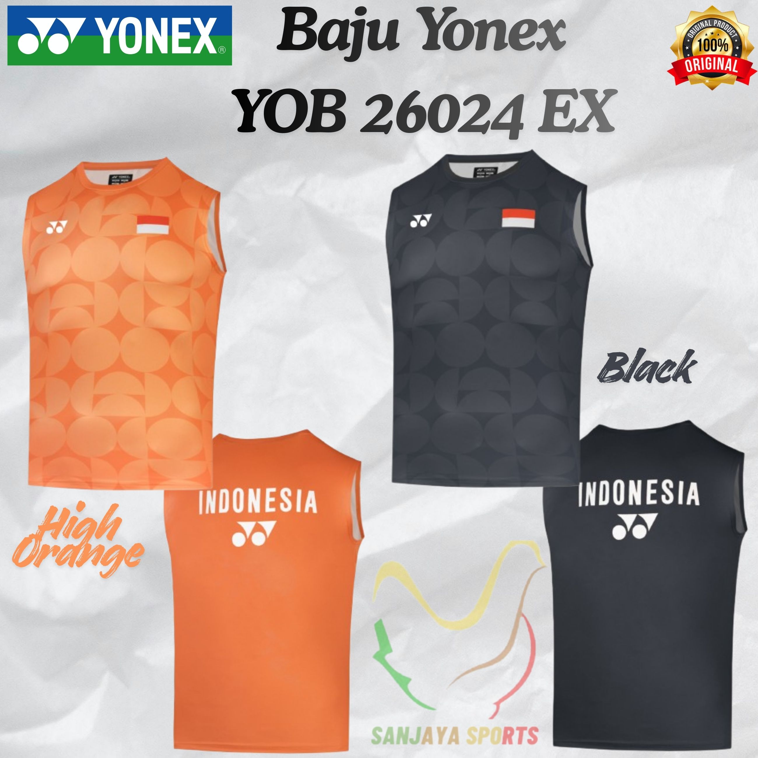 YONEX New Kaos / Jersey Yonex Badminton Sleeveless YOB 26024 EX ORIGINAL (Color : Black, High Orange) Size Asia: XS, S, M, L, XL, 2XL, 3XL Harga :