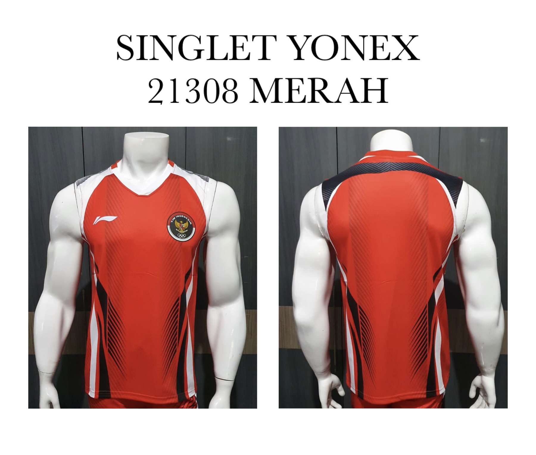 BAJU YONEX KERAH IMPORT 21307, READY WARNA MERAH SIZE M. PUTIH SIZE M