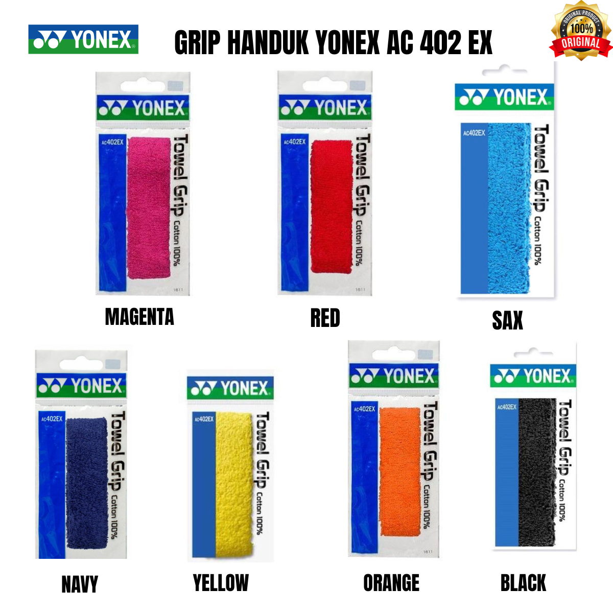 YONEX GRIP BADMINTON BULUTANGKIS TOWEL YONEX AC 402 EX AC402EX ORIGINAL WARNA MAGENTA , NAVY , ORANGE , SAXE (BIRU MUDA) , RED , YELLOW Harga :