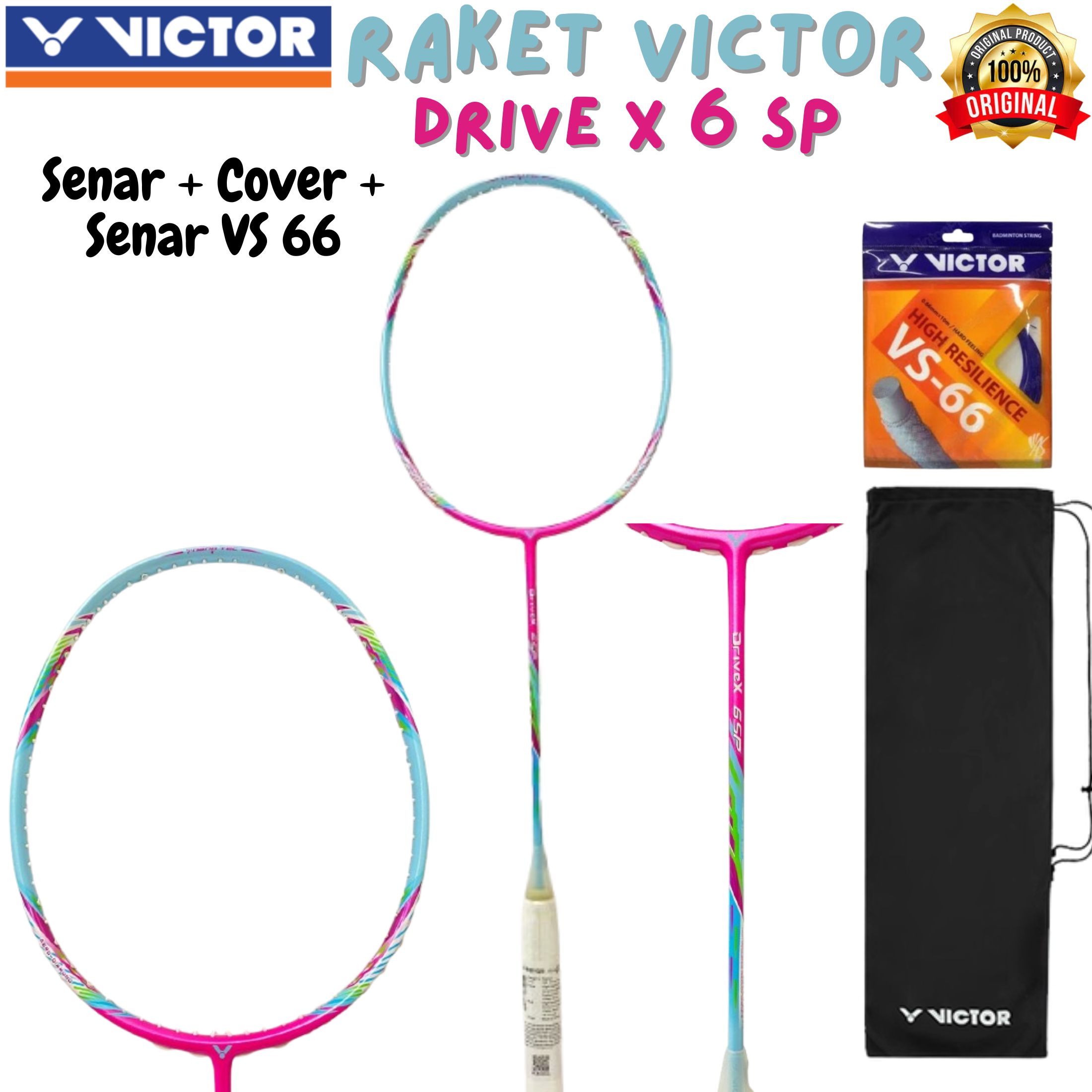 Victor Raket Badminton Bulutangkis Victor DRIVE X 6 SP Rose Pink Original (SENAR VICTOR VS 66 + COVER) Harga :