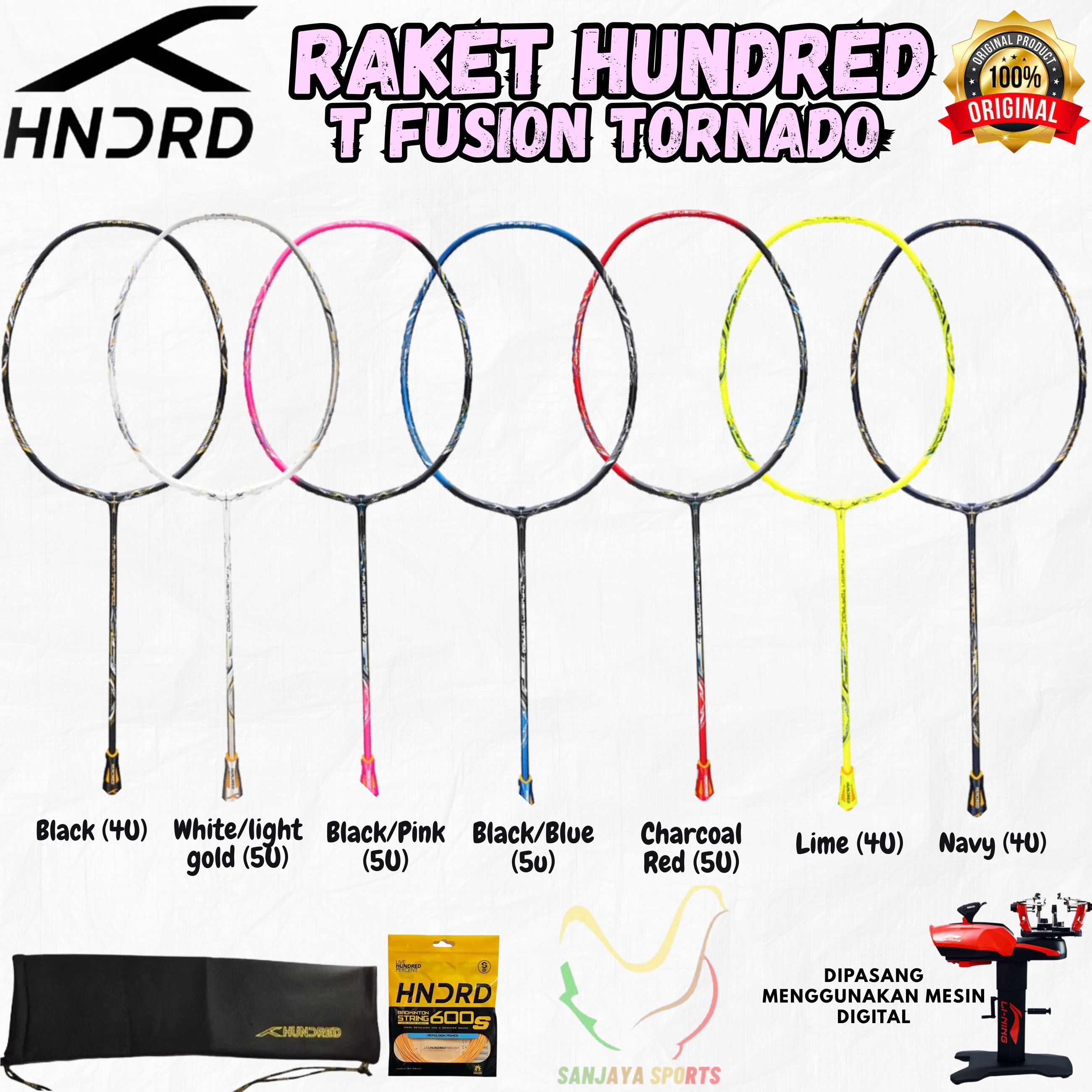 HUNDRED RAKET HUNDRED BADMINTON BULUTANGKIS HNDRD TUNDERBOLT 78 ORIGINAL READY COLOUR : 3U080-4 BLACK FREE: -SENAR HUNDRED 600S -GRIP -COVER SERUT Harga :