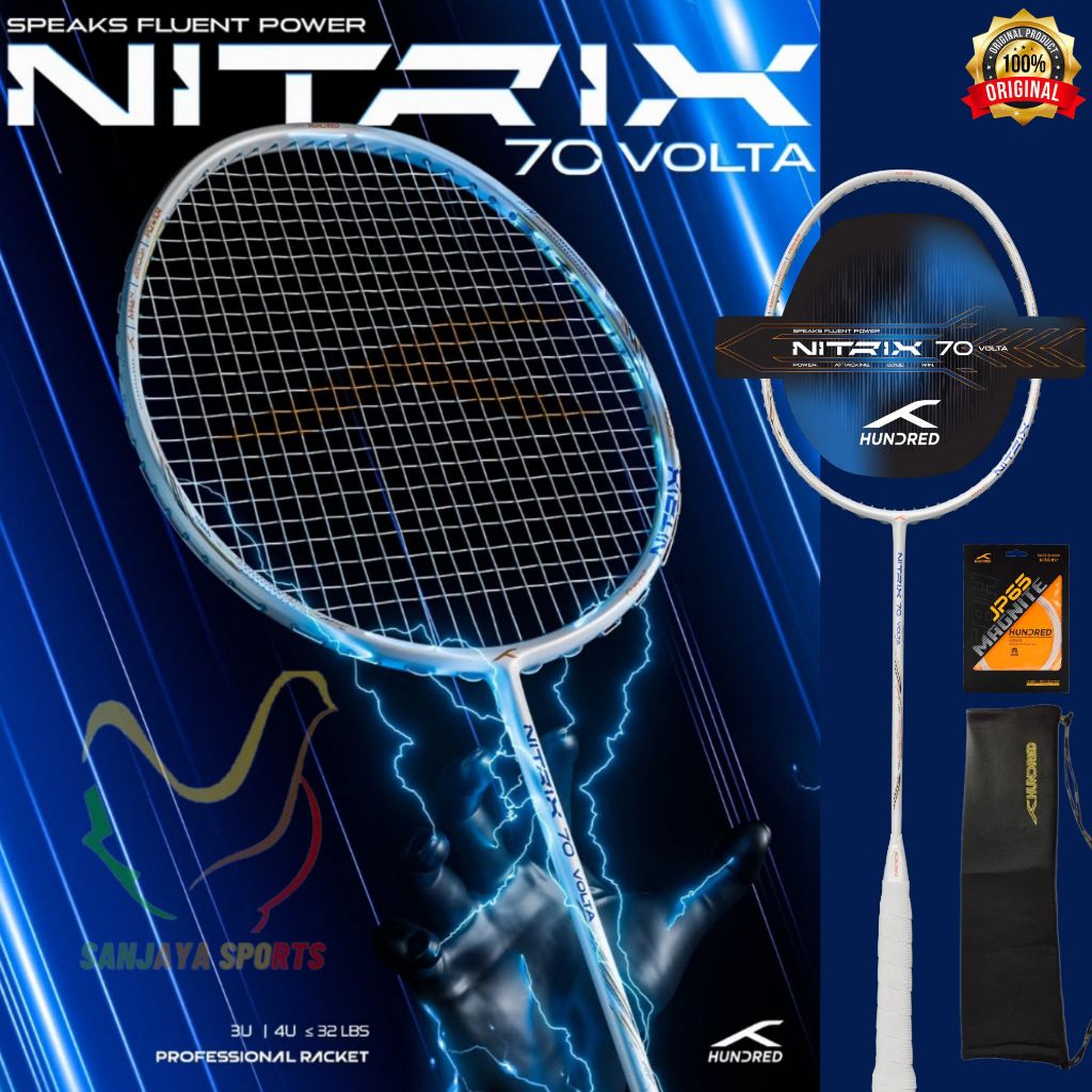 HUNDRED NEW raket Hundred Nitrix 70 Volta White Copper 3U 4U ORIGINAL (SENAR JP 65 MAGNITE + COVER) Harga :